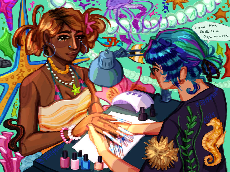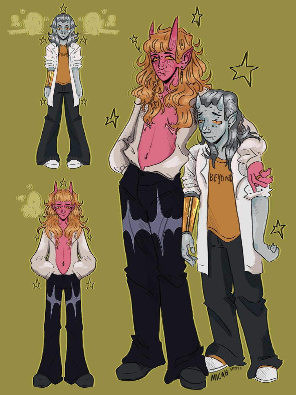 My name’s Micah 🤗 i’m 20 years old and an Alternative hairstylist from west michigan!! this account is so unserious hahah i’m gonna try to draw more but you should totally commission me (or dm me to get your hair done i do cool stuff 🤭😇)